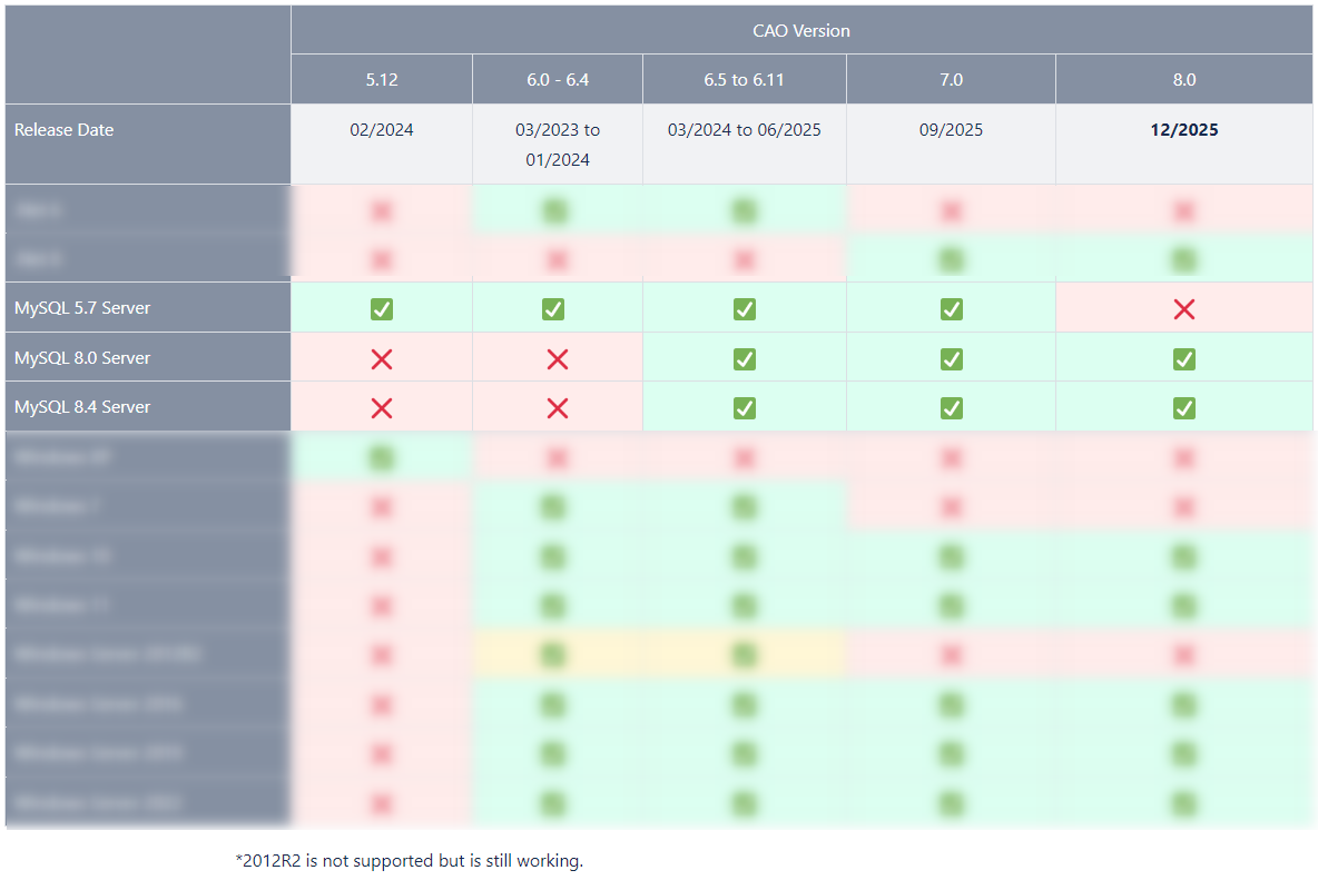 Please check the compatibility of your installed CAO client versions based on the following matrix.